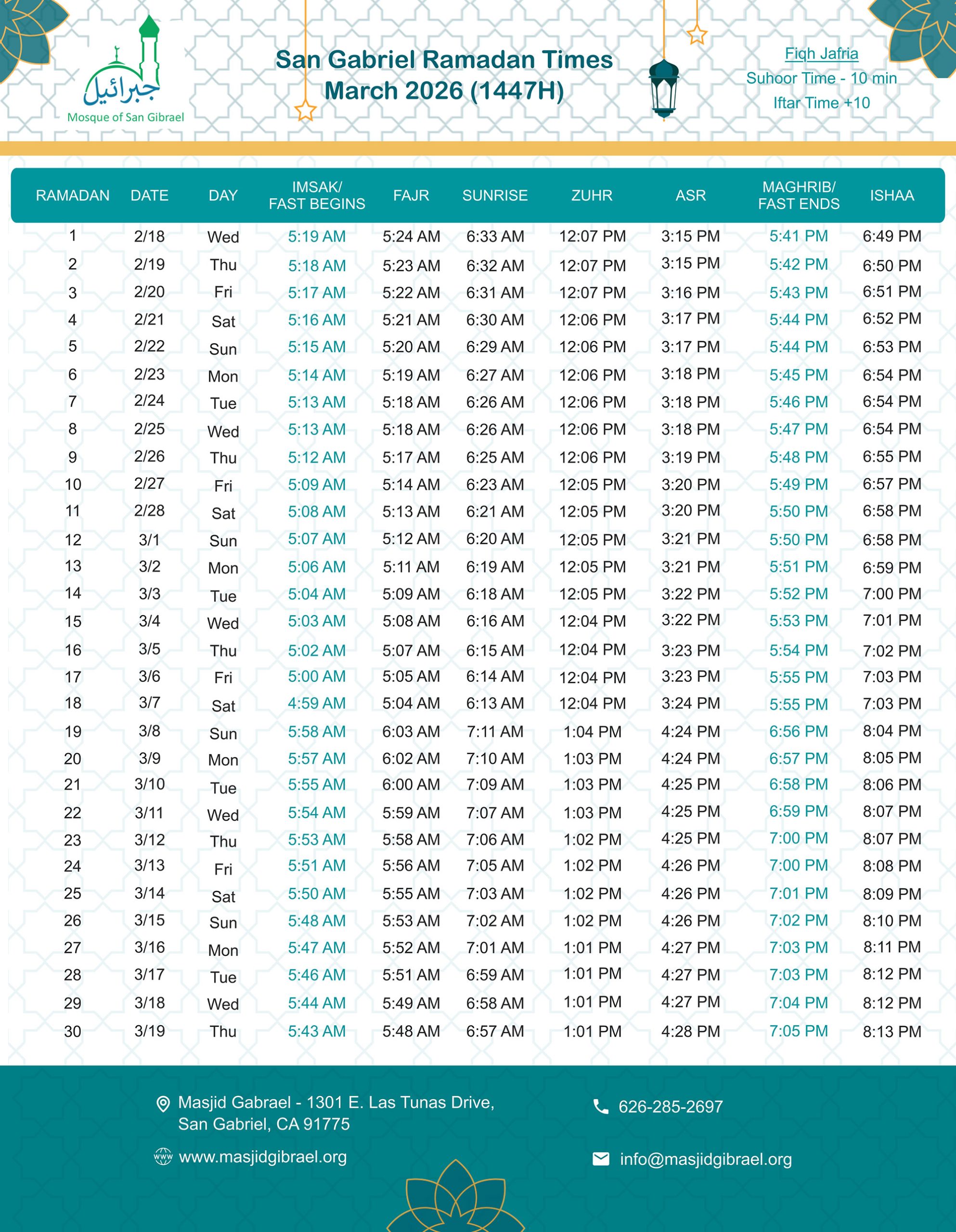 Established in 1983,Masjid Gibrael to serve the needs of Muslims in San Gabriel, Alhambra and surrounding communities. The Masjid provides a religious and educational environment that meets the growing needs of our diverse and ever-expanding Muslim community.